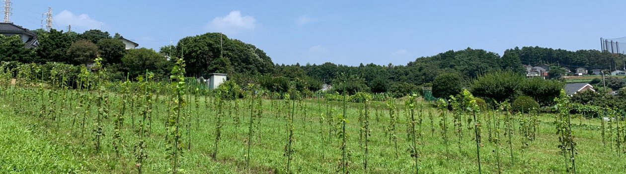 草は虫の住処であり餌場だ。草があることでブドウの葉への被害が軽減される。昨年は根本からしっかりと草刈りをしたため、ブドウの葉が虫食いの被害にあった。今年は現時点で葉はほとんどきれいだ。生物にはきちんと生態系のピラミッドがある。できるだけ自然の慣しに委ねることでブドウの苗たちを生かす。